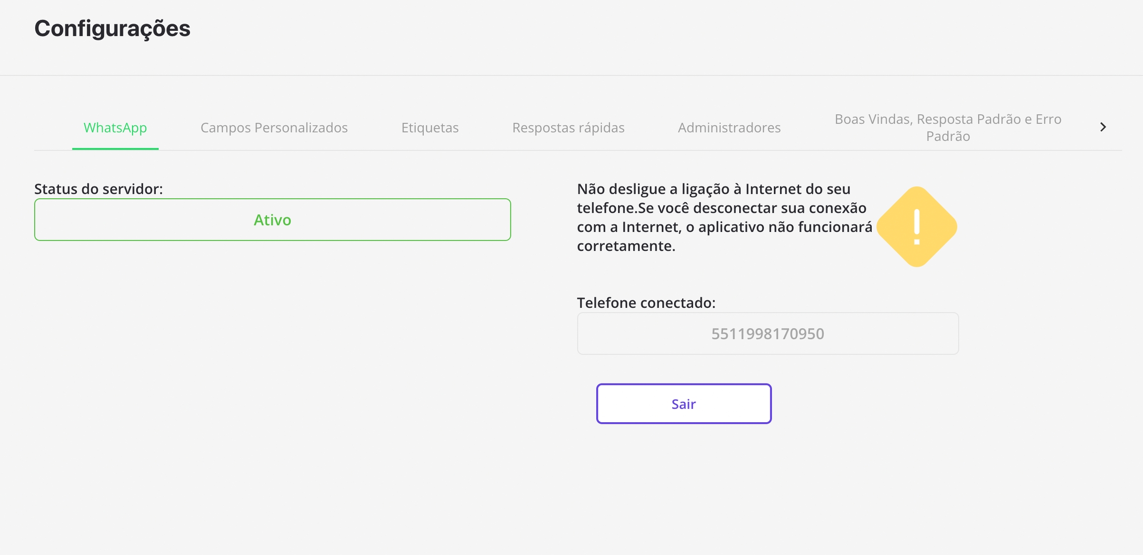 Pronto! Quando o Status do servidor aparecer "Ativo" significa que o seu WhatsApp estará conectado!