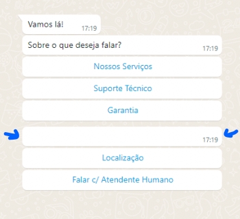 Como esse texto em branco vai se repetir toda vez que você estiver enviando mais do que 3 botões, nós recomendamos que você utilize um texto genérico como o da imagem.