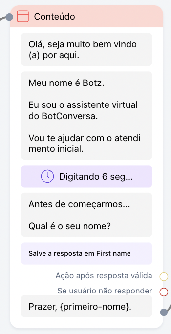 A partir do momento que o usuário responder essa pergunta, o fluxo da conversa irá continuar automaticamente.