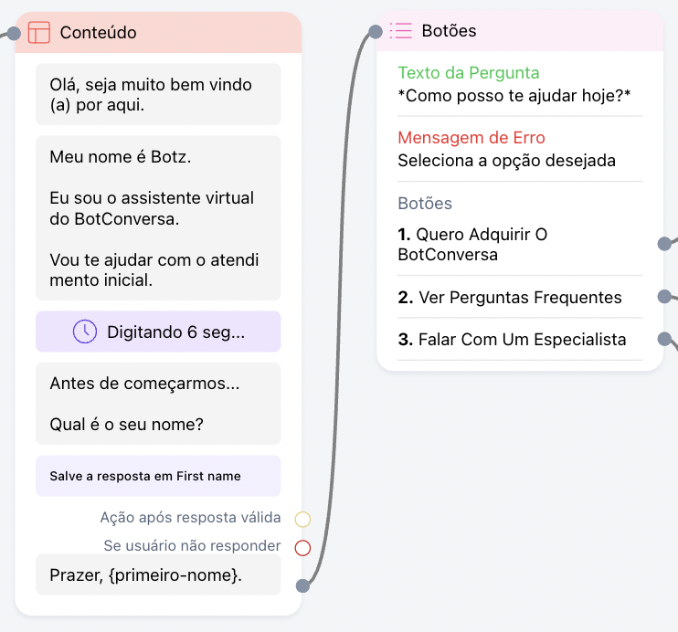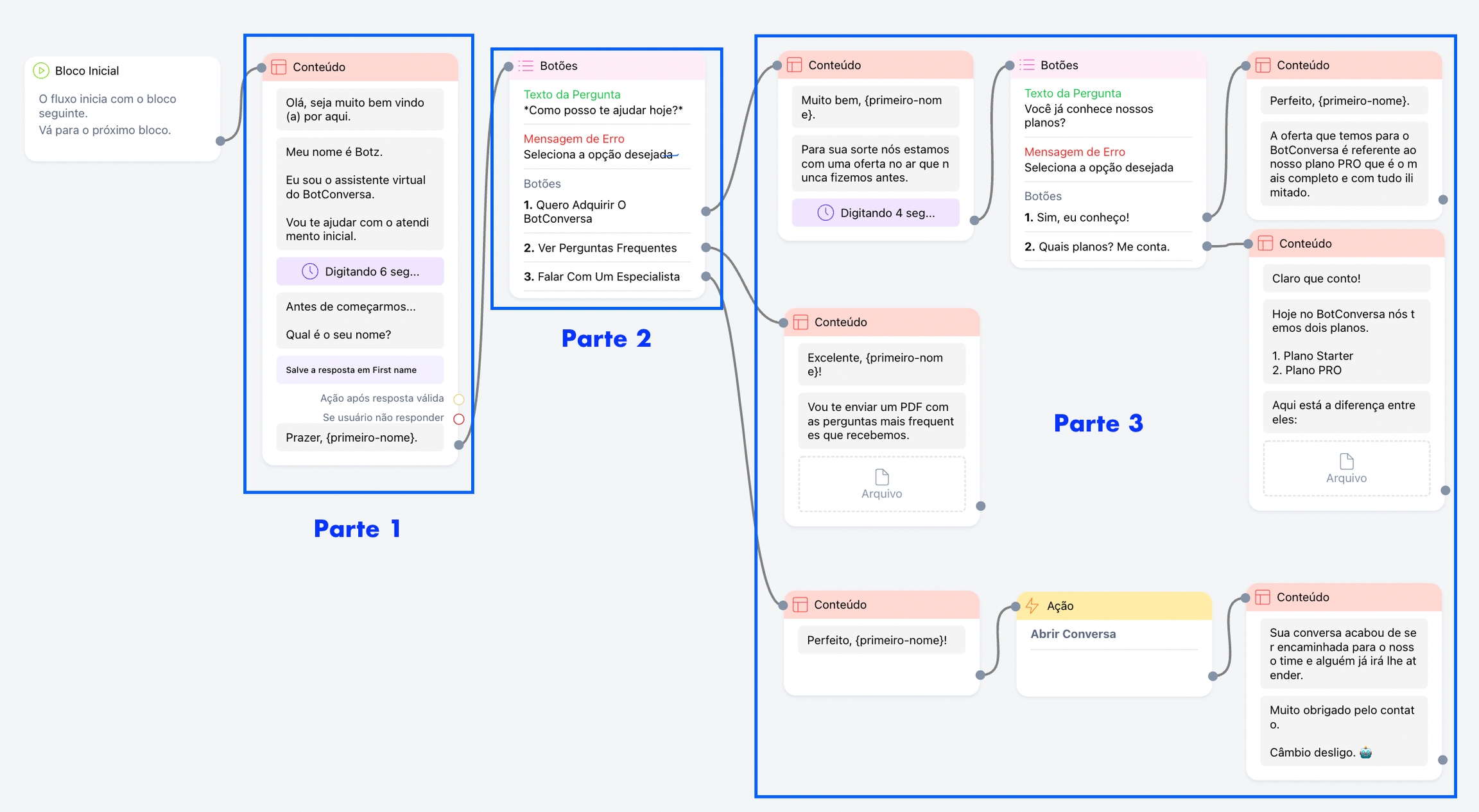 O fluxo que aparece na imagem está disponível para ser adicionado em qualquer conta do BotConversa através do link abaixo.