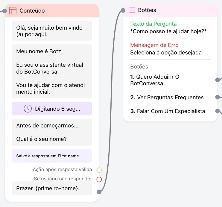 Essa é a parte mais legal da construção dos robôs porque é aqui que você começa a colocar a sua imaginação em prática. Até a parte do menu é tudo muito igual entre todos os negócios. Mas do menu pra frente, cada negócio tem a sua própria comunicação.