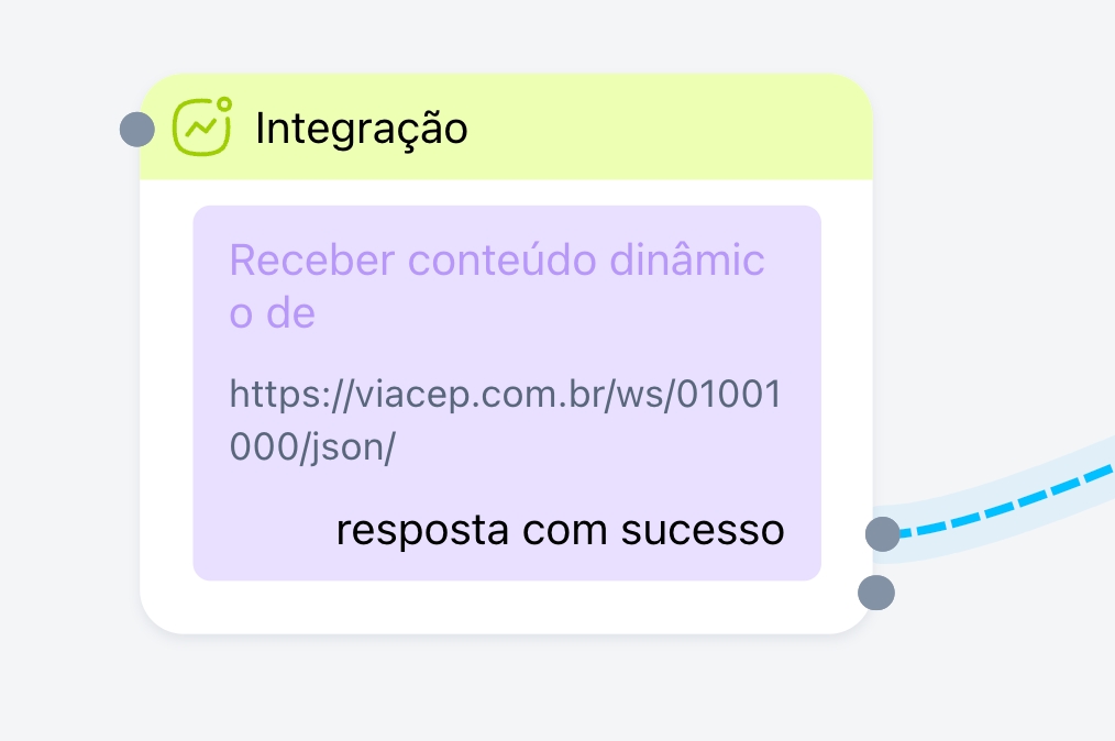 De forma prática, toda integração que será realizada dentro do próprio fluxo de conversa, poderá utilizar o bloco de integração, pois ele durante a execução do fluxo realiza a requisição e retorna com os dados para o prosseguimento do fluxo. (exemplo: durante o fluxo, perguntar o CEP do contato, realizar uma consulta em uma API e retornar com o nome da rua do contato).