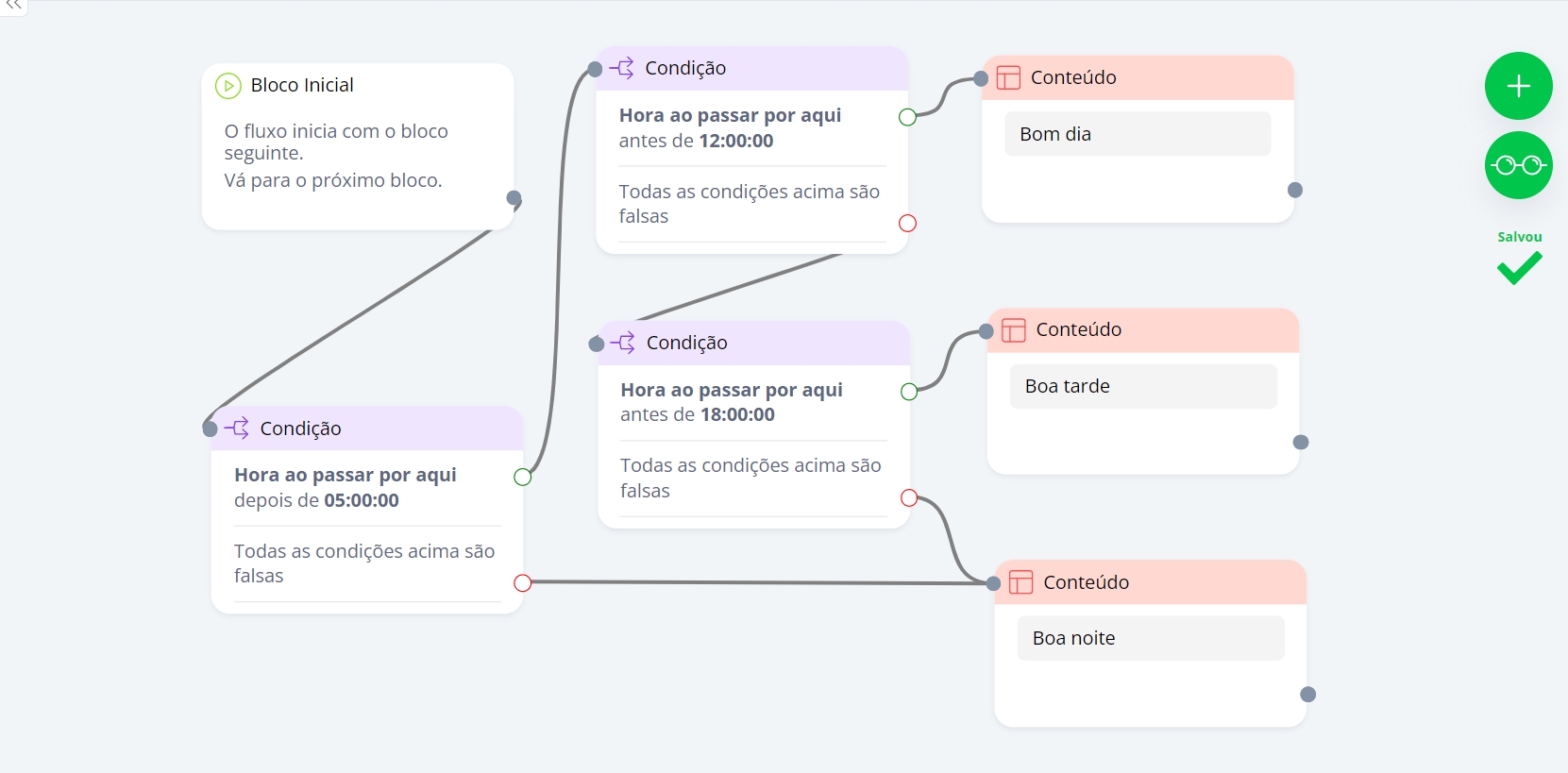 Use este fluxo para direcionar o atendimento conforme o período do dia.